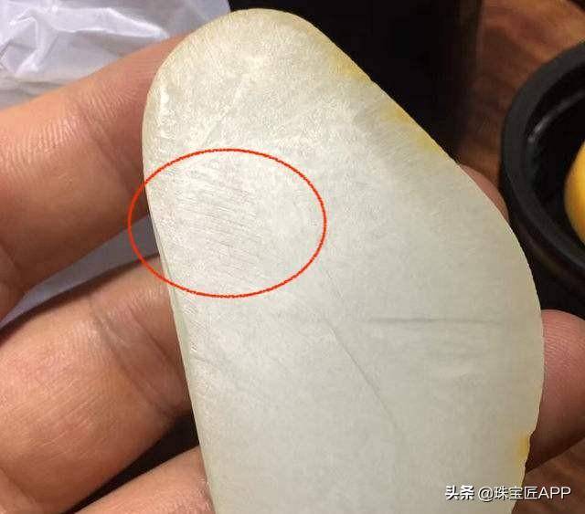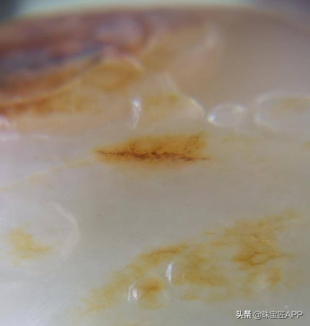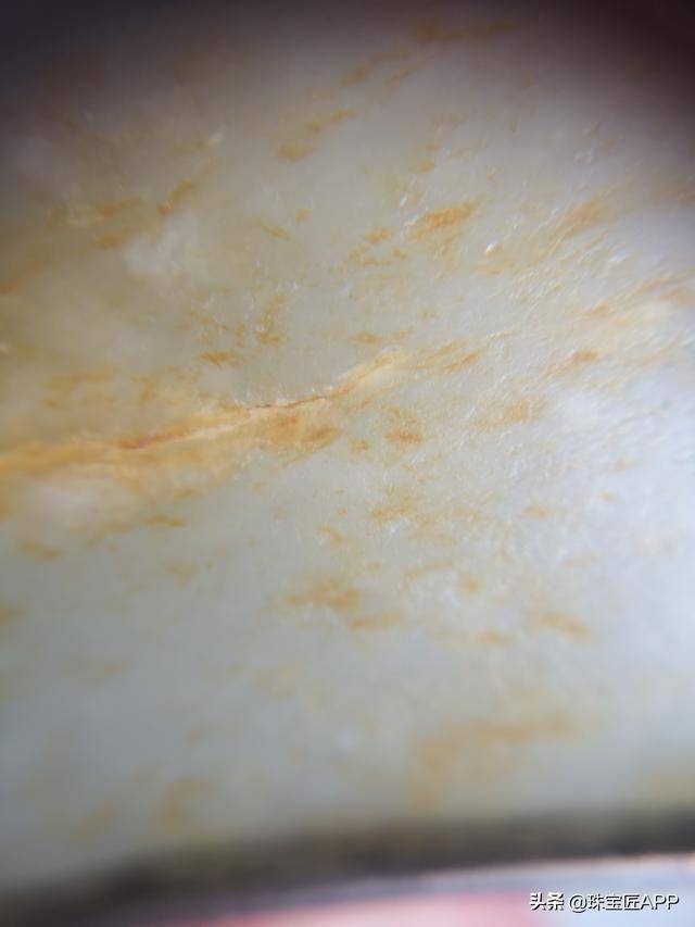 当然,这个肉眼很难看出来,需要借助放大镜。所以如果你想玩和田玉,一只十倍放大镜,一个手电筒是必不可少的。
