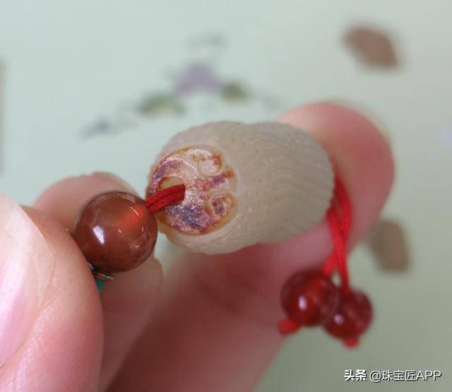 如果是籽料雕件,钉子纹可能裸露在外,比较容易观察。如果是籽料原石,就需要借助手电筒打光,仔细看内部是否也有沁色。