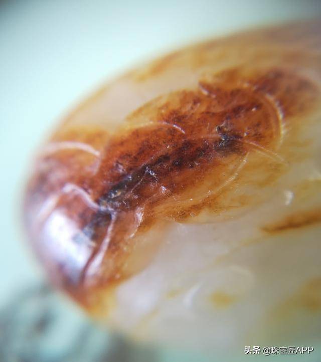 比较有迷惑性的是中高端仿籽料,用山料、高品质俄料做皮,或是对籽料二次上色,卖着籽料的价格,令人防不胜防。