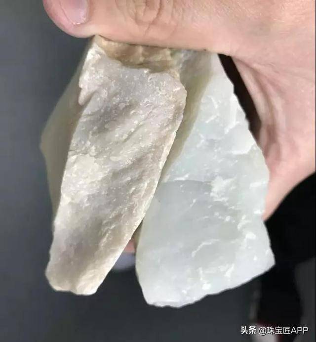 在原料未切时,因为厚度的原因,主体颜色看上去是青白色的。切完之后,切完的样块要比主体薄,看上去就比原料主体白了很多,仅仅是改变了厚度,颜色就发生了明显的变化。