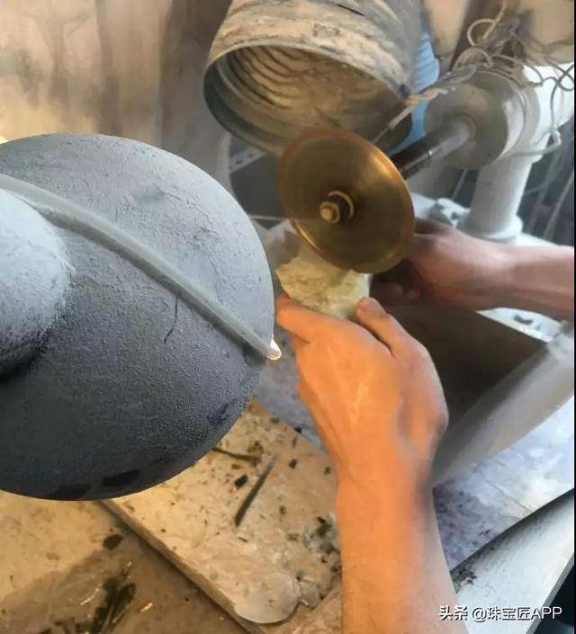 为什么会选这样一块标本去切,是因为我听说高青白的米达料切完会“返色”,也有人称“脱青”,就是切出来会比开始看到的颜色白一些,另外就是这块标本绺裂比较多,沿着裂去切两刀也不会心疼,就决定是你了!