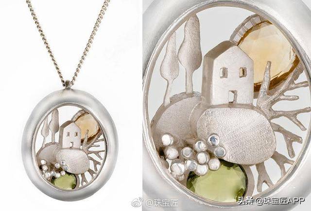 她的作品灵感来源于十九世纪的珠宝大师的作品,用金或银重塑了经典永恒的吊坠,并将旅行中所看到的各种奇妙珍贵的时刻浓缩到吊坠设计当中。