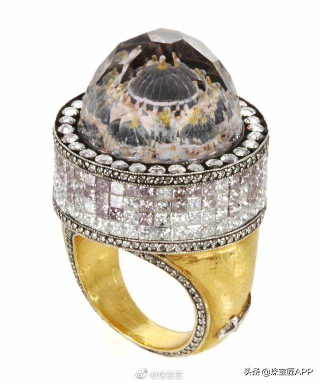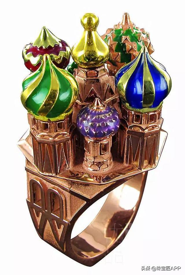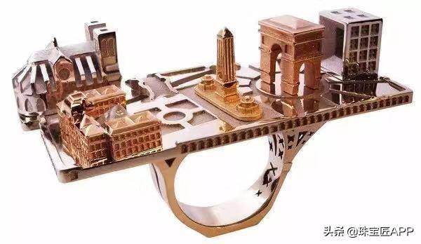 比如one piece 系列戒指,他就以土耳其建筑为创作灵感,将各种建筑用微缩的方式雕刻在戒面上的大颗宝石中。