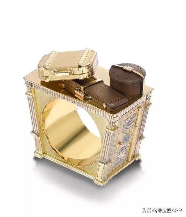 还有下面这件作品,这是一款旅行套装戒指,方形的设计,立体感十足,上面还有迷你版的行李箱。但是,你以为这枚戒指只是外表看上去那么简单么?