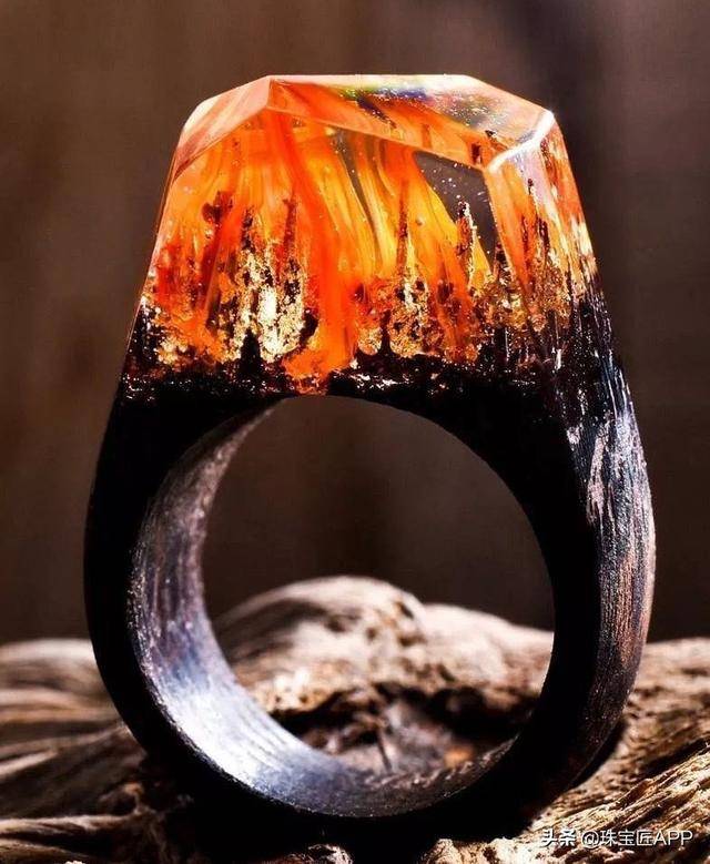 没错,这就是风靡一时的网红戒指,是由来自于加拿大的艺术家Big Cartel利用木材、树脂、蜂蜡等材质所设计的。