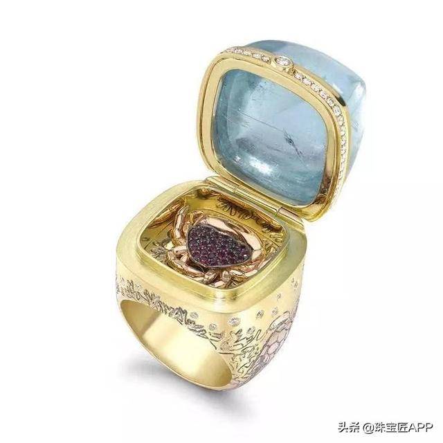 从外表上看,是一枚以海蓝宝石为主石的戒指,造型简单精美,与寻常的戒指没有太大的区别。但是,当你打开戒指的顶盖......