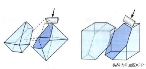 如果你手上有颗钻石,可以试着从侧面看看,如果没有被镶嵌挡住,在钻石的亭部位能看到一条像是断裂的纹状带。