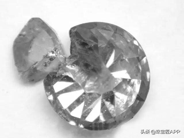 从下面这张图中我们可以看出,钻石破裂后的破裂面实际上是一个平整的平面,这个面实际上就是解理面。