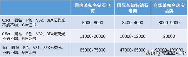 我挑了三种参数的裸钻来做对比,这些价格都在网上可查,欢迎自行查询。