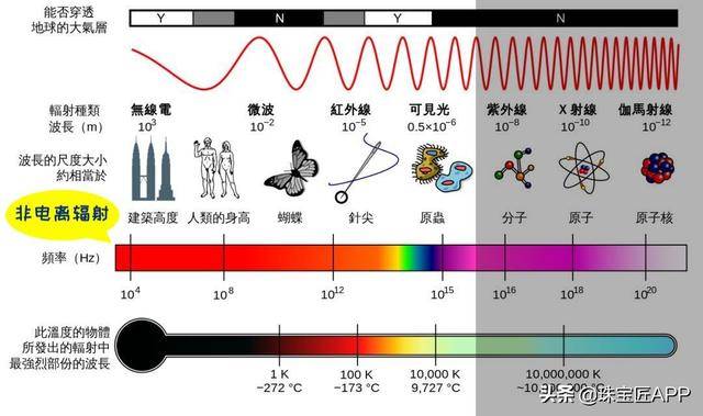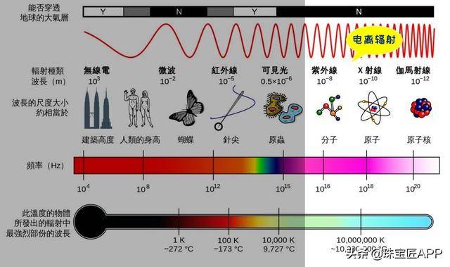 电磁辐射能量和波长直接相关:波长越长,频率越低,能量越弱;波长越短,频率越高,能量越强。