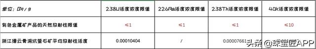 比如因为会发光而总被人们扣上辐射帽子的萤石,不仅放射性物质含量极微少,放射性物质活度和国标(GB20664-2006 有色金属矿产品的天然放射性限值)比,也是可以忽略不计的。
