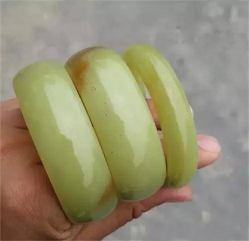 如今市场上的黄口料,青海黄口占了大多数,其颜色青黄,有着青海料水透的特点,偶有水线和白棉析出,只要能认得青海料,也就不难分辨青海黄口。