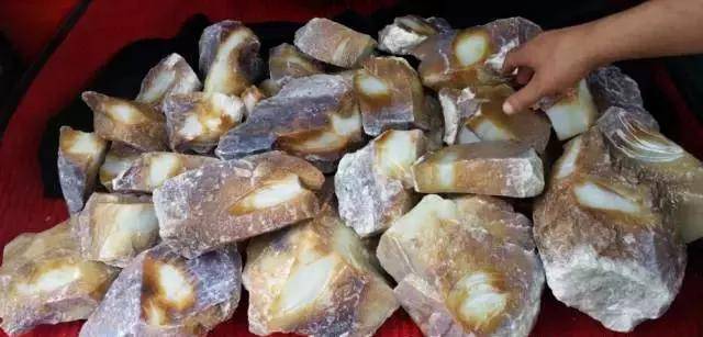 有时候几十公斤的料子也无法切出一只手镯,普通的青黄口原石在维族人手上一般需要统货购买,起步价格小四每公斤。