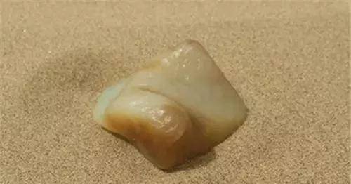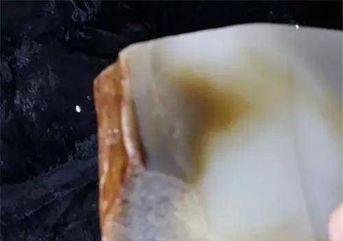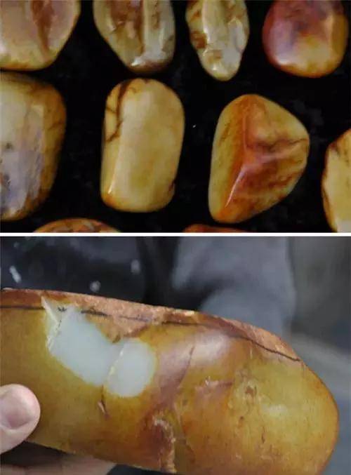 玉友们往往还有一个误区,就是只有山料、俄料是带糖色的,其实在戈壁料和籽料中都有糖色出现,籽料穿糖,也是我们切料时候最担心的事情之一: