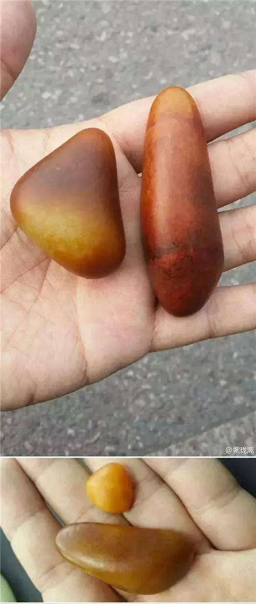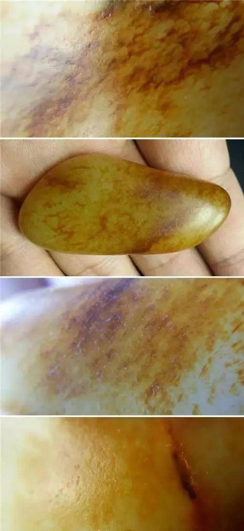 此类红黄颜色,不是和田玉的原生色,与文中开头所讲的染色红玉性质差不多,玉友注意鉴别。