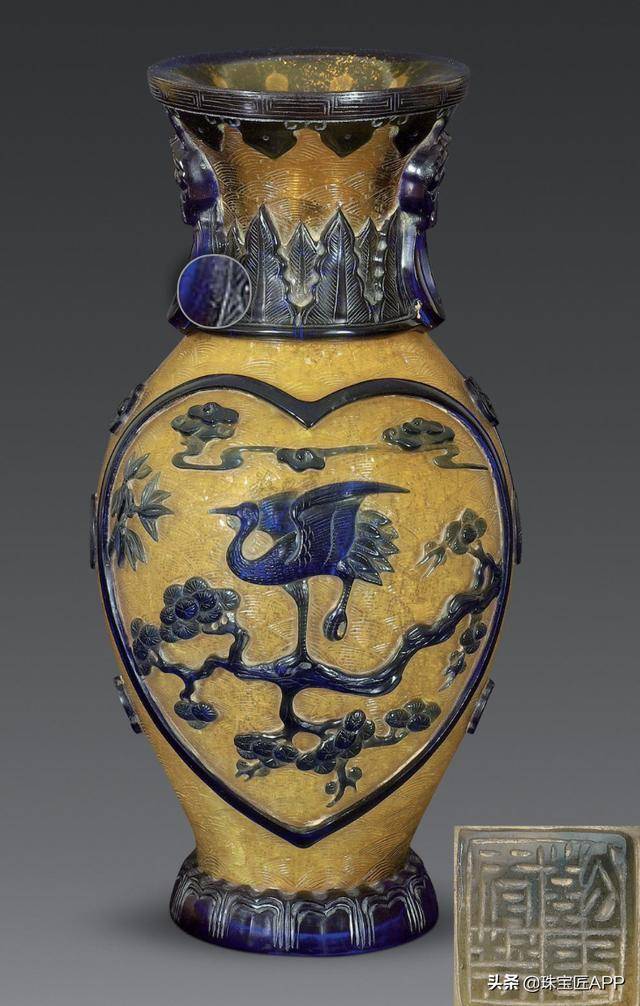 清乾隆·金星套料开光松鹤荷花双耳瓶