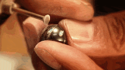 镂空珍珠就是先在珍珠表面钻孔雕刻,然后掏膛,最后让珍珠中间部分中空。