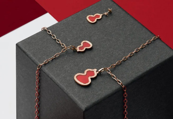 蓝盈莹佩戴的这款葫芦形耳环,灵感就是来自于中国传统文化中,象征着吉祥的葫芦。