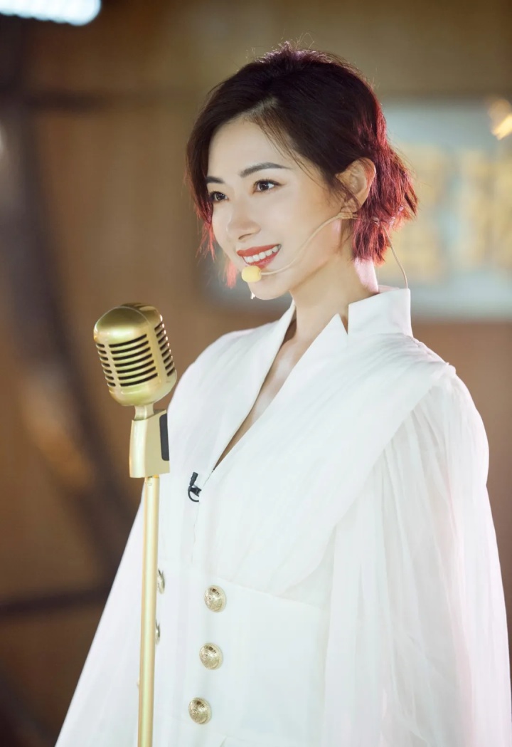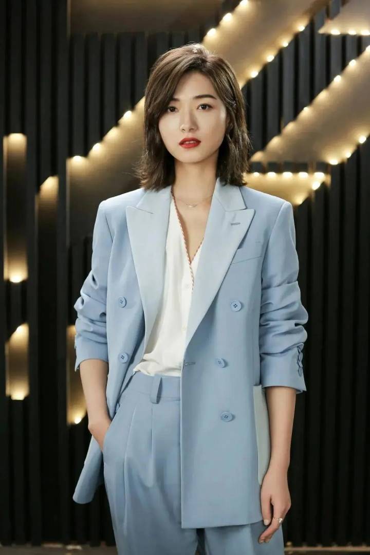 万茜在节目中的装扮,多以浅蓝色和白色的纯色休闲西装为主,不仅有型,而且十分个性。