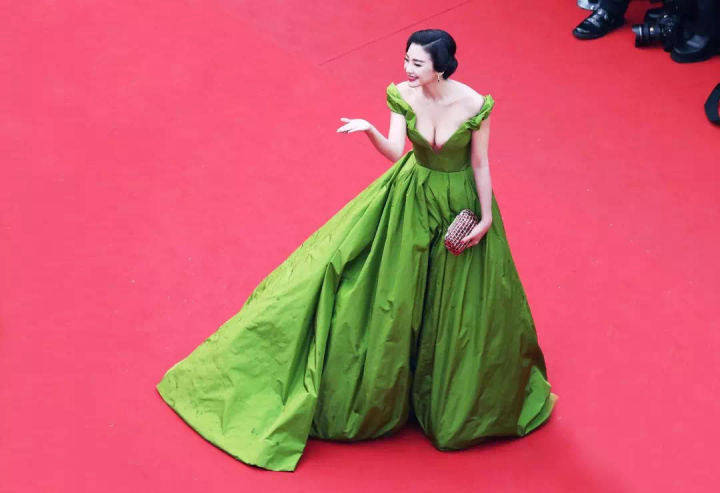 最经典的就是2013年戛纳电影节上的装扮,一条绿色的深V长裙,经典的中式发型,性感美艳至极。