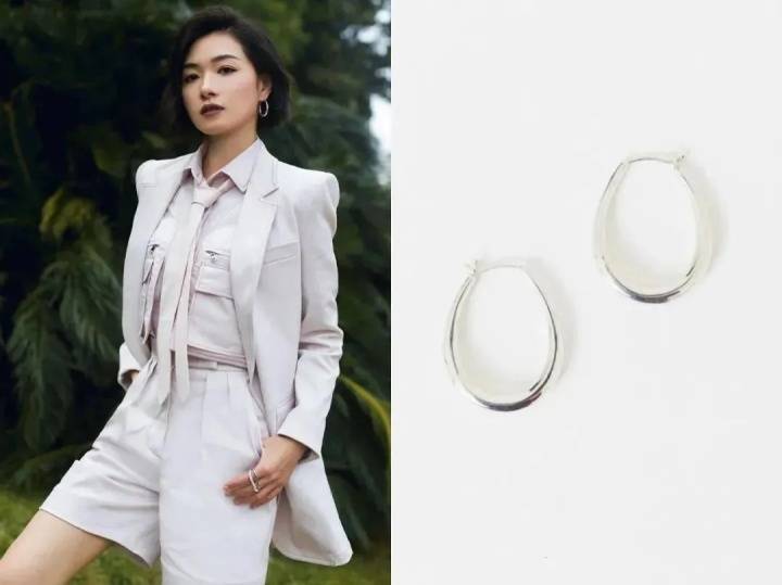 搭配的首饰也很简约,Sophie Buhai的耳钉、Qeelin的戒指、agete的项链,这些简单个性的小配饰,装扮在万茜的身上可以说是恰到好处,与她本身的气质也非常搭哦。