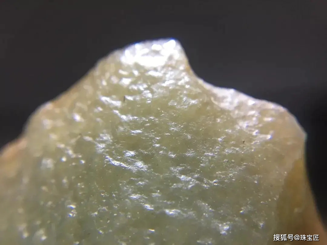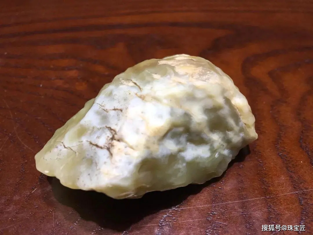 关于风吹尘皮有一个误区,不少青白戈壁料挂上淡黄皮以后,会透出与黄口料类似的光泽,很多商家有意无意地把这类料子当做黄口甚至黄玉出售,值得警惕。
