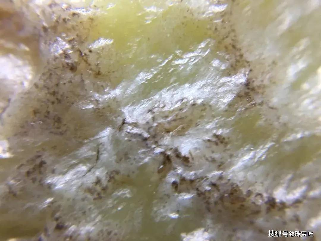 这类戈壁料结构相对细腻,有细微的云絮状结构,鱼籽皮存在于各产地的各色系戈壁料之中。