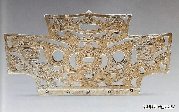 上面不仅饰有样式精美的纹样,同时还有小孔,可以用来插戴羽毛类装饰物。