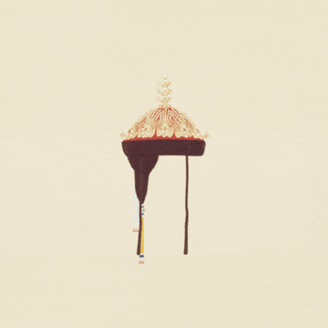 冕板多为长方形,前圆后方,用以象征天圆地方,戴的时候前低后高,呈前倾之势;