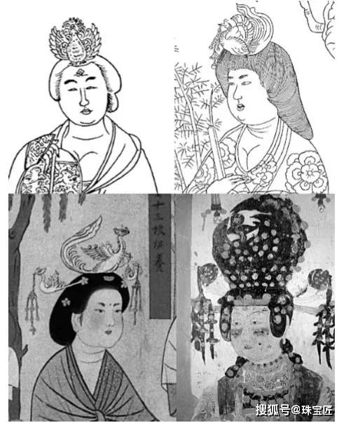 唐五代贵妇常服 盛装首饰中的凤鸟和口衔珠结的凤簪