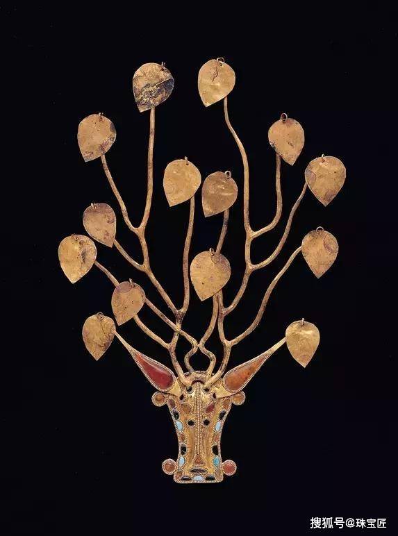 在辽宁北票房身二号前燕墓中就曾出土一件花树状饰的歩摇冠,头冠上饰有金叶,会随着人的走动而摇曳。