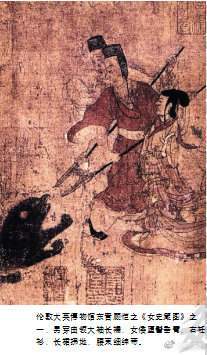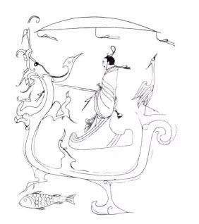 而南方的头冠,多呈扁平状,上面常饰有水波纹、羽毛等纹样。