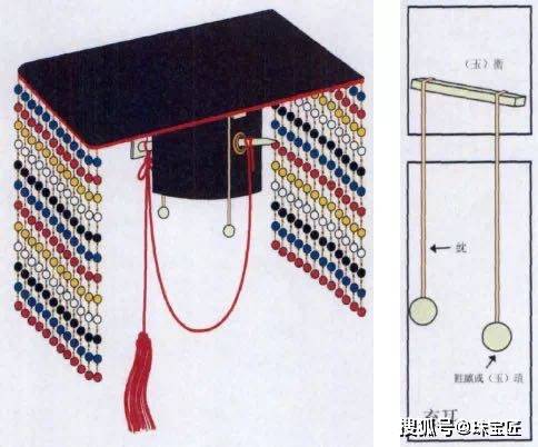 在冕板的前沿处挂有一串串圆形玉珠,用来提醒戴冠者,对于一些小事和不该看的事情要“视而不见”。
