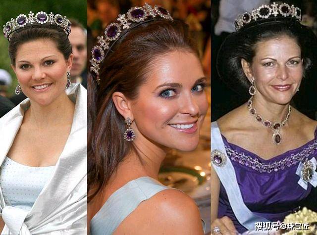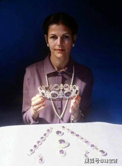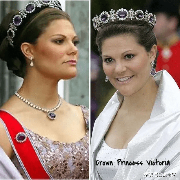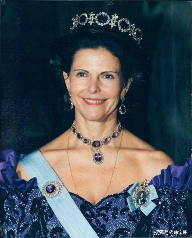后来,西尔维娅王后将这件紫水晶套装传给了自己的长女:维多利亚女王储。