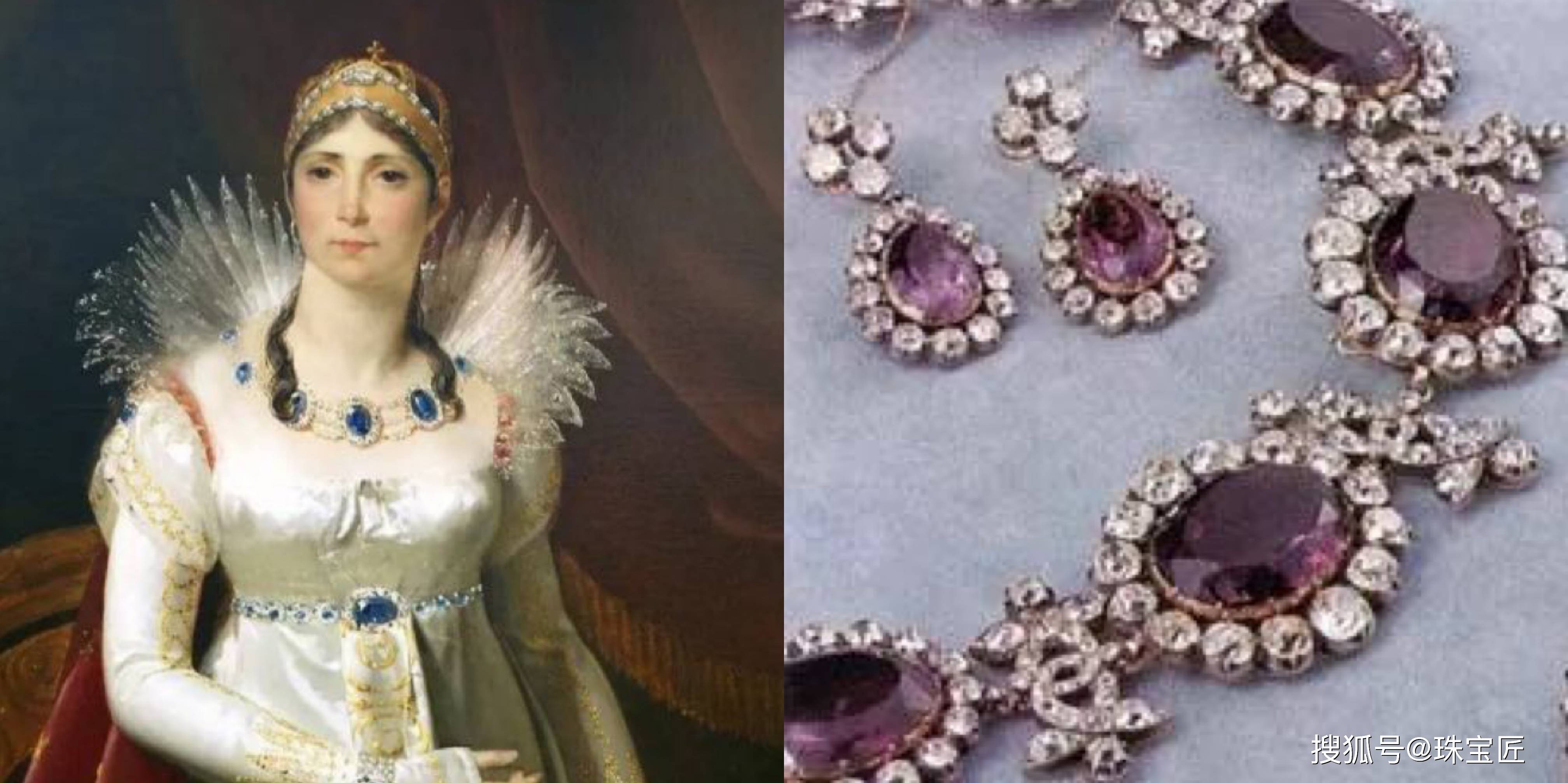 后来,巴伐利亚的奥古斯塔·阿玛莉亚公主将这件紫水晶套装传给了自己的长女:约瑟菲娜·德·博阿尔内。