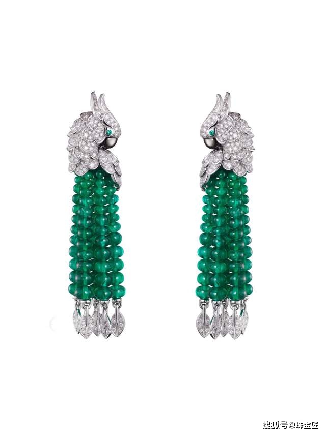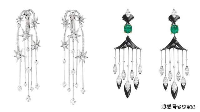 左:Étoiles Étoiles 钻石白金耳坠,by Chaumet;右:Cascades royales 祖母绿白金
