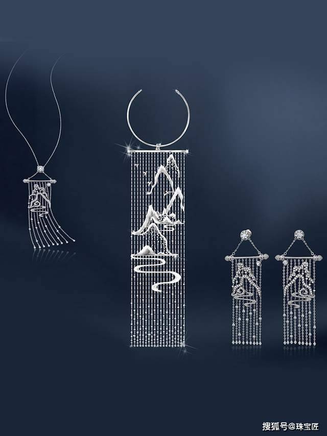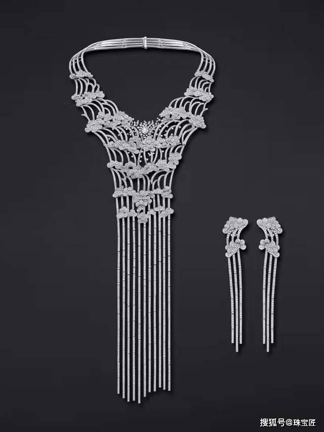 金伯利钻石典藏臻品系列高级珠宝中,流苏元素与中国传统纹样题材相结合,彰显高级钻石珠宝的极致奢华。