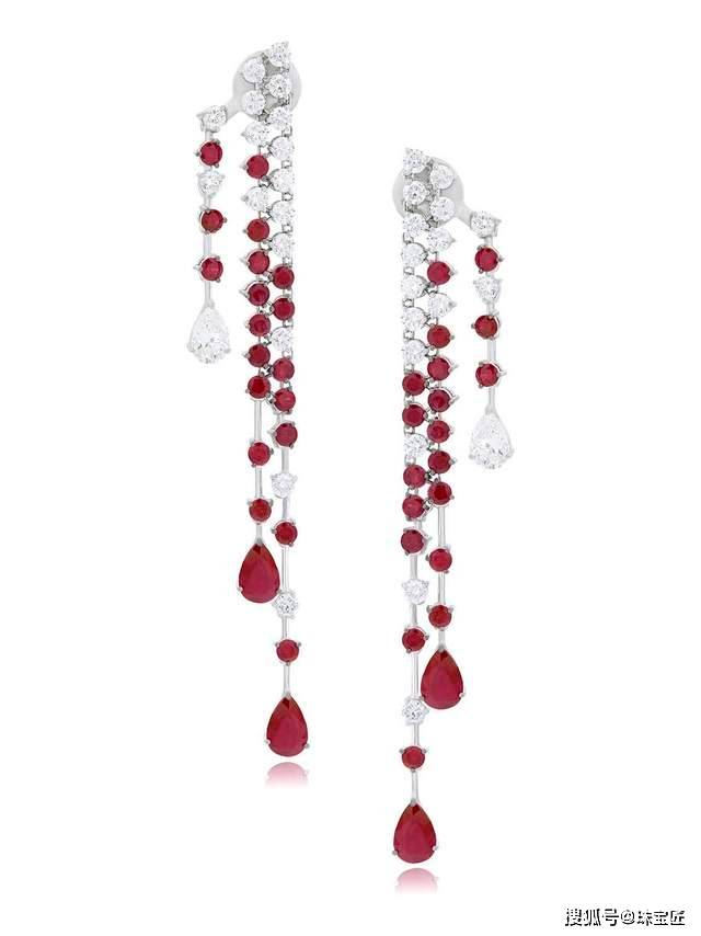 Stenzhorn的红宝石钻石系列作品中,圆形与水滴形宝石的错落搭配,使得作品轻盈愉悦,不会过于沉闷。