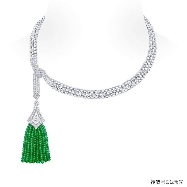贵气又有个性的应该是Louis Vuitton这条祖母绿流苏白金项链了。