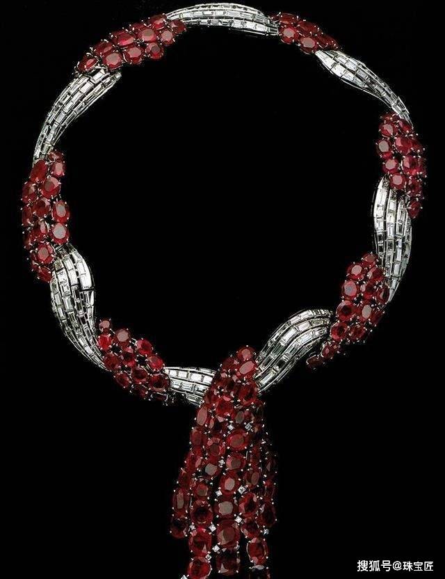 在著名的爱江山不爱美人的故事中,辛普森夫人40岁生日的时候,刚当上国王半年的爱德华八世送给她的生日礼物,就是由梵克雅宝设计的钻石红宝石流苏项链。