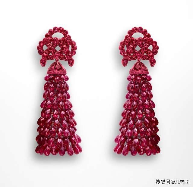 Chopard的Red Carpet红宝石系列作品中,层层叠叠的素面红宝石镶嵌像是摇曳裙摆,除此之外Red Carpet系列还采用了钛金属骨架制作,使作品整体视觉效果颜色更加饱满。