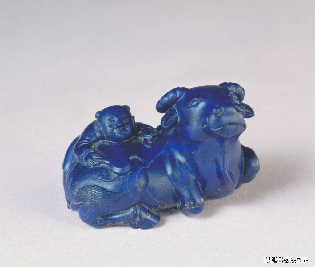 青金石牧童骑牛,清,高4.4厘米,长6.5厘米,宽5.3厘米。