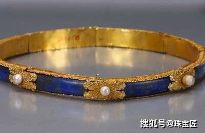 金镶青金石金约,清,清宫旧藏。此金约为清代嫔使用,串珠已缺失,仅余金箍。
