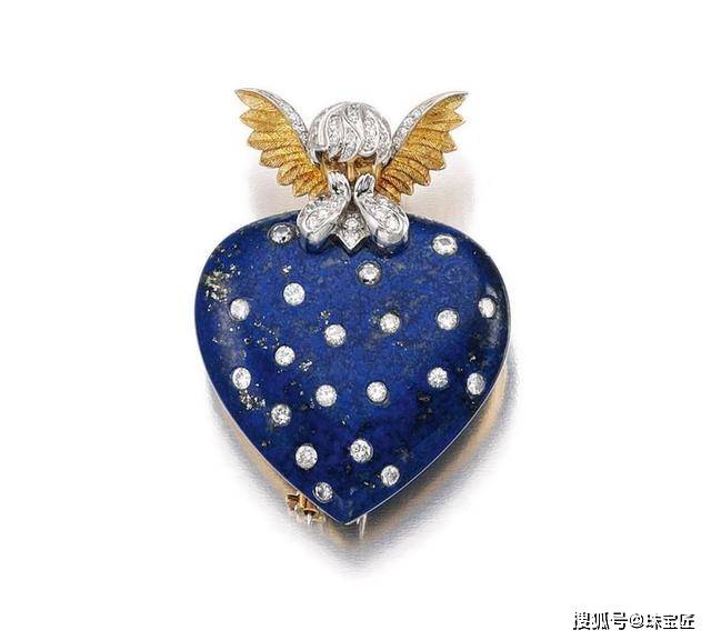Heart with Cherub 金质胸针,镶嵌青金石、钻石,from Verdura Collection