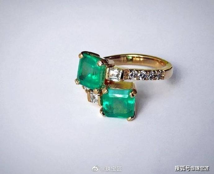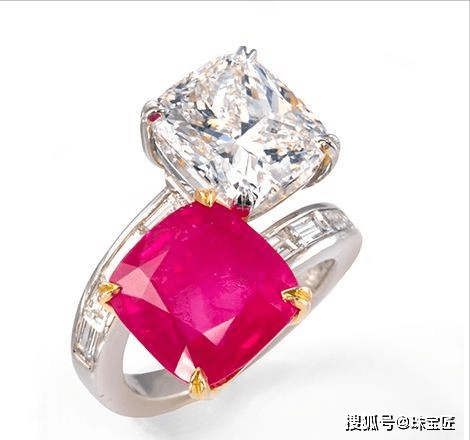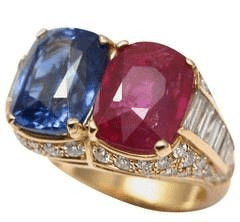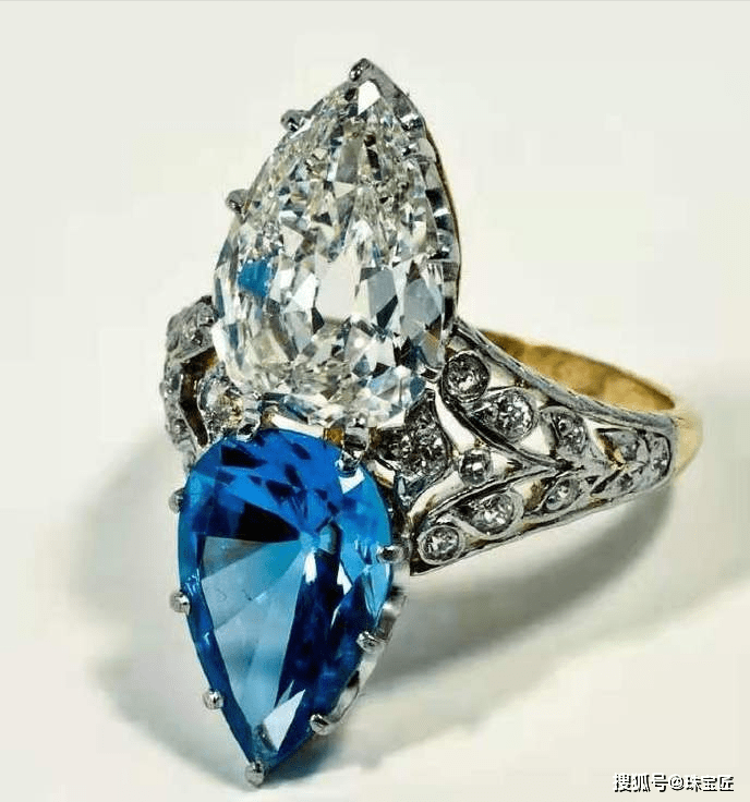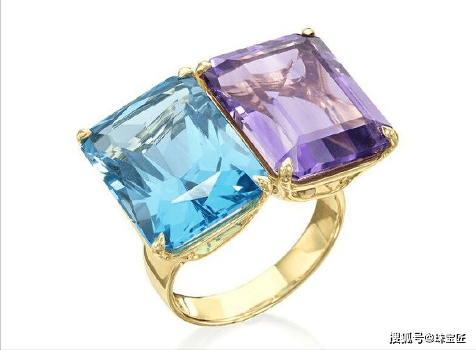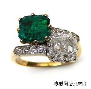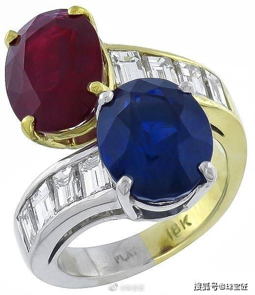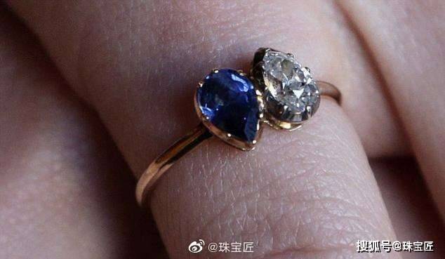 在古董戒指中,或者传统的戒指款式里,我们看到的大部分双石戒指基本是主石琢形一致,只不过颜色不同。