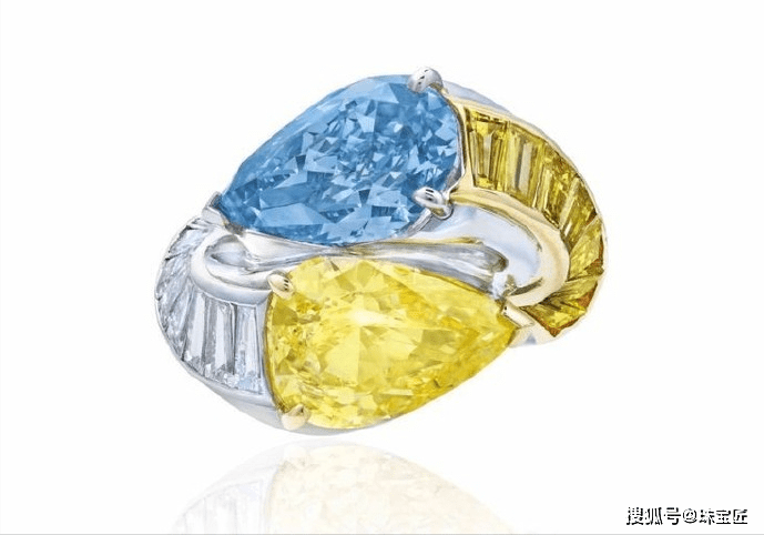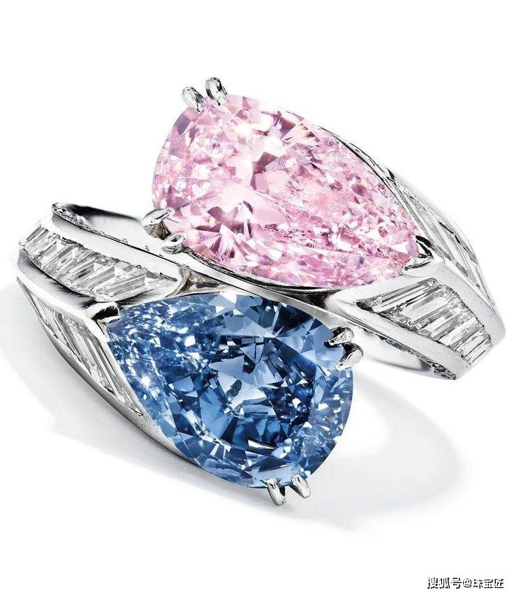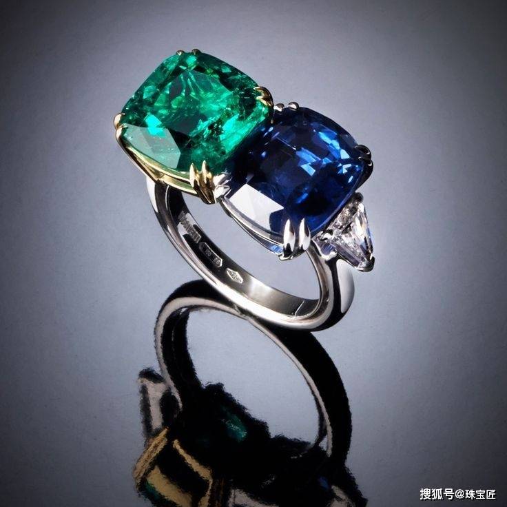 颜色鲜明的两颗主石镶嵌到一起,不仅别具一格,还能互相衬托。