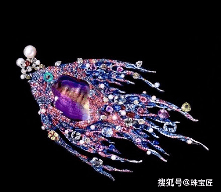 梵克雅宝凭借着精湛的工艺以及出众的创造力,用各色彩宝为我们打造了一个奇妙而又梦幻的鱼类海洋馆。