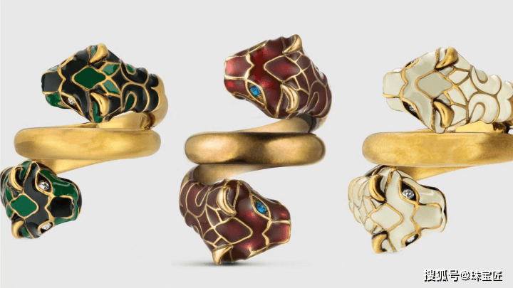 Gucci较早以虎为主题的珠宝,是一枚双虎头造型的珐琅戒指。