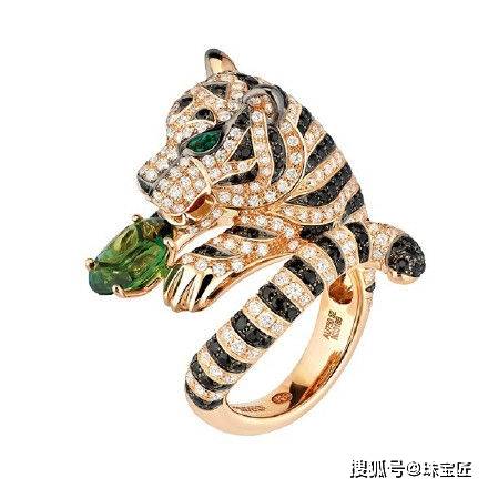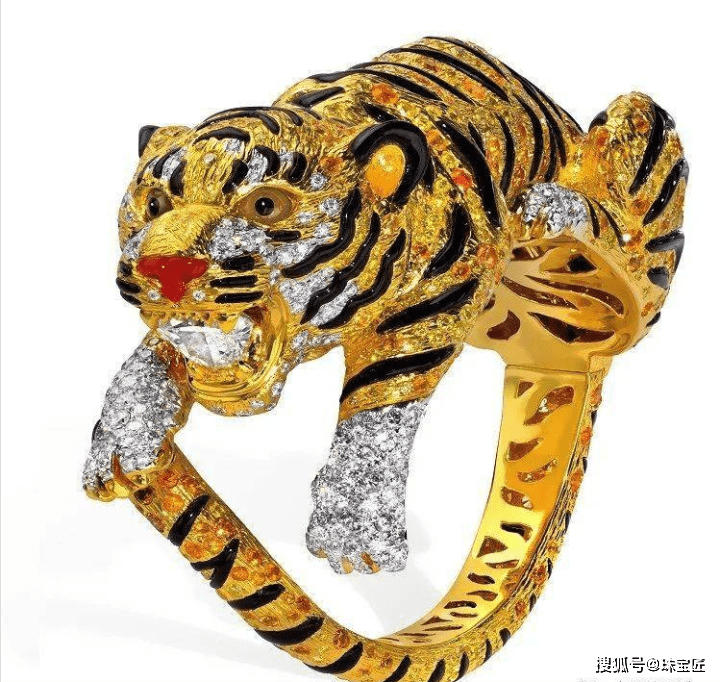 其中,这枚以老虎为主题的戒指,堪称细腻金工与霸气造型的典范。