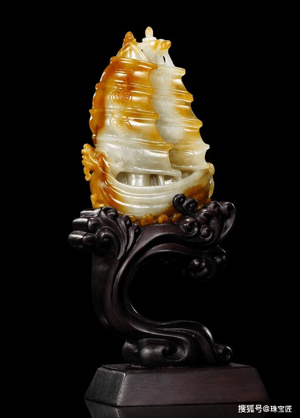 薛站科 翡翠一帆风顺摆件 | 图源:博观拍卖